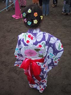月曜日の夜、米国旅行から戻り、火曜日は親子3人で池袋へ遊びに行きました。これで夫の夏休みも終わり。水曜日は娘(5歳)は幼稚園、夫は会社へ私は旅行の後片付けを頑張ってます。 ところが、今週娘の幼稚園は木曜と金曜日がお休みだそうで...。大ショック。(泣)水曜日だけしか幼稚園が無いなんて...。娘がいない間に、片付けや、お土産配り、掃除、洗濯を終わらせようと思っていたのに。(ゆっくりしようとも思ってましたけどね。笑) その理由は木曜日の夜に幼稚園で行われる盆踊り大会。園児は浴衣を着て、参加します。5時開園で、娘達(年長)の踊りは6時半から。 いやー、すごい人でしたよ。何しろ、マンモス幼稚園ですから。在園児以外にも、もちろん保護者、卒園生等、ものすごいことになってました。 夫も会社帰りに来てくれたのですが、あまりの熱気でクラクラしてました。 「...ママはもうダメです。帰ろうよー。」と、半泣きで娘に訴えると「ダメだよ。踊ってからだよ。」と、冷たく5歳児に注意されました。 踊ってからとは本人言うものの、娘は2週間の間、旅行で幼稚園をお休みしていたので、踊りの練習をしていないのだから、踊れないのでは?と思ったのですが、本人はやぐらの上で踊っている先生達を見ながら、笑顔で踊っていました。見よう見まねで踊っていたので、もちろんテンポがずれてましたけど。本人が楽しんでいるのだから、良いのでしょう。(笑)