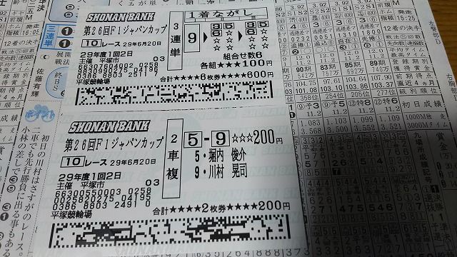 もう少し6番が伸びれば、15万車券だったのに。。。