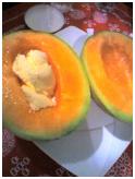 日々、みなさまのご好意で生かされている私たち。その事実を改めて本日、実感した次第。なんと~、今日は北海道出身のはるまきさんのご実家から送ってこられた夕張メロン(丸1個!)をご相伴に預かりました。昔、なんかのテレビで明石家さんまがメロンを半分に割ってバニラアイスをのっけて食べるとうまい!と言っていたのでぜひ実践したい、とのxingxing選手のご要望で片方にはバニラアイスがてんこもり。種を取るときに一緒に捨てちゃう汁気ももったいなく、まさに皮まで食べちゃいたいほどのおいしさでした・・・。そして、メロン+バニラアイスですが「うまいメロンにアイスは必要ない!」ということが証明されましたとさ。