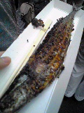 今年もやってきました目黒のさんま祭。一人一匹の焼きサンマの無料配布のために数万人が行列するという、正気ではとてもつきあえないファンキーなイベントです。今年は朝8時半に目黒駅のウェンディーズ前で集合。ウェンディーズで朝食セットを買い(この時点でさんま一匹買うよりもコスト高)、朝からハンバーガーをほおばりながら並ぶこと1時間半。ひたすら並ぶ。その間は、とーぜんどうでもいい話。9時半ごろからモクモクと遠目から見たら「ボヤ!?」と思うような黒煙が昇りはじめ、10時過ぎには待望の焼きサンマをゲット。炭火でまっくろこげになったさんまちゃん・・・。ここまで待ち望まれて食されるのであれば本望でありましょう。さんま食用簡易テーブルの周りで、老いも若きもただひたすら焼きさんまを食す。前回参加の2年前と比べて進化したポイントとしては、特別協賛の徳島のすだち娘じきじきに焼きさんまにすだちを絞ってくれるとこ。これ、たまらん人にはたまらないサービスかと。「はい、どーぞ♪」ってしぼってくれるの。私でも嬉しかった・・・。ポイント高し!とまあ、正気ではおつきあいが難しいイベントですが、秋晴れの空の下、さんま欲しさにずらっと人が並んでいる光景って「あー、なんだか日本って平和だなー」と思えて、ほのぼの幸せ気分になるのよね。ずーっと続けて欲しいイベントのひとつ。