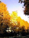 いまをときめく防衛省官舎前のいちょうの並木道。とってもきれいに黄色に色づいてます。