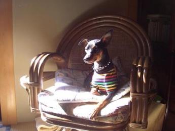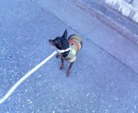 ミニピンって、ちょっとした陽だまりも見逃さないと思いませんか?ちょっと決めポーズで記念撮影♪きりりとしています。そこにアクティやってきてぇ~。 どうやら、文句を言ってる様子(笑)ジュニはナルシーだから、空気読んであげてねぇ(^^