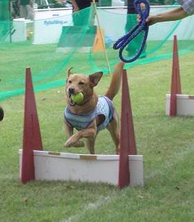 しつけや訓練なんかしたときに、ワンコがうまく出来たら即座に褒める!これは誰でも知っていることですよね。フライボールの練習も同じで、うまく出来て帰ってきたらとにかく褒める!褒めちぎる?!先生に常日頃から教えられたことであります。我が家のワンコはといいますと・・・・ぷりんの場合私だけの褒め褒め攻撃よりも、周りのみんなに褒められるとめちゃくちゃ興奮する。褒められることが至上の喜びらしい(^^スタートさせてからもみんなで「ぷりん~!」なんて叫ばれた日には、あーた大変よぉ~。おやつ攻撃も好きだが、一歩間違えると飼い主の前でお座りして何もしなくなる(汗)やることやら無いとおやつもらえませんで、ぷりんさま・・・。 ジュニの場合褒められるだけじゃいや!おいらは、現金主義だぜぃというのがジュニ。始めはおやつは一切使わずにやっていたが、あるお方から「このこの最大の喜びは、おやつをもらうことですよね。」(恥ずかしかった)といわれてからおやつを使った練習開始!あれよあれよと、伸びてきたのは確か。しかし、なんか物足りなそうだ?そこで、言葉で褒めちぎる攻撃も開始したのである。自分じゃ、あまり気にしなかったのだが思いついたことすべて口に出す。「ジュニ~おりこうだネェ~、良く出来たね~、グッボーイ!」ってな感じ。もう、そりゃぁ得意げな顔になってやる気満々。褒めてるこっちも歯止めが利かない。「イケメンだネェ~、かっこいいねぇ~、お前が一番素敵だよぉ~!!!」おやばか炸裂である。先日、先生に「○×さんは、褒め方が面白いね。」と言われて気づいたくらいだ(爆)まあ、なにはともあれ本犬が一番喜んでくれるのが一番の私の喜びであるから、これからも周りを気にせず褒めちぎっていこうと思う。いつの日にか、ハードル無しでスイムターンが出来る日を夢見て・・・。