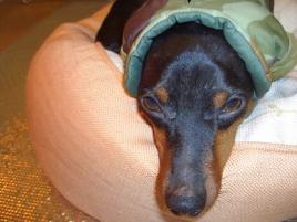 ママが、帽子だよって被せてくれた。 でも、なんかちょっと変! ・・・これって、アクティのダウンジャケットじゃないの!!!(怒)