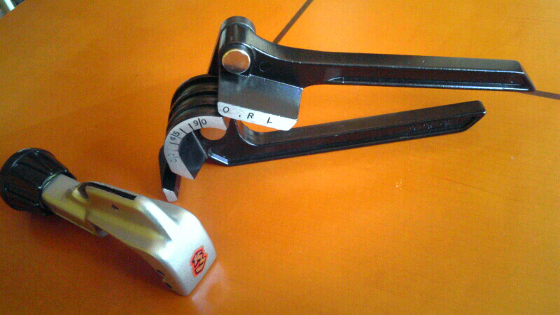 前回のエントリーも買い物の話だったけど、今回もお買い物のハナシ♪クローリングRCをする人には御用達アイテムのアルミベンダーとカッター。カッターの方は100均で購入。まぁそれにしても最近の100均は100円じゃないものが多い。このカッターも800円でした。試しに外径6mmパイプを切ってみましたが、思ってたよりもサクッと切れて満足な一品。そしてベンダーは近所のホームセンターをいくつか回ってみたけど結局どこにもモノはなく通販にて購入。RC用に使うならどれがイイのか、それなりに検索してみたけど、なかなかオイシイ情報に辿り着けず.....。ある種、フィーリングと色が黒って理由でカートイン♪こちらも試しに曲げてみました。多少パイプが凹むのが難だけど角度通りに曲げる事が可能。それなりに満足でおます。これで自作リンクを制作する工具ども捕獲コンプリート。ボチボチと構想を練ってリンク作ります♪