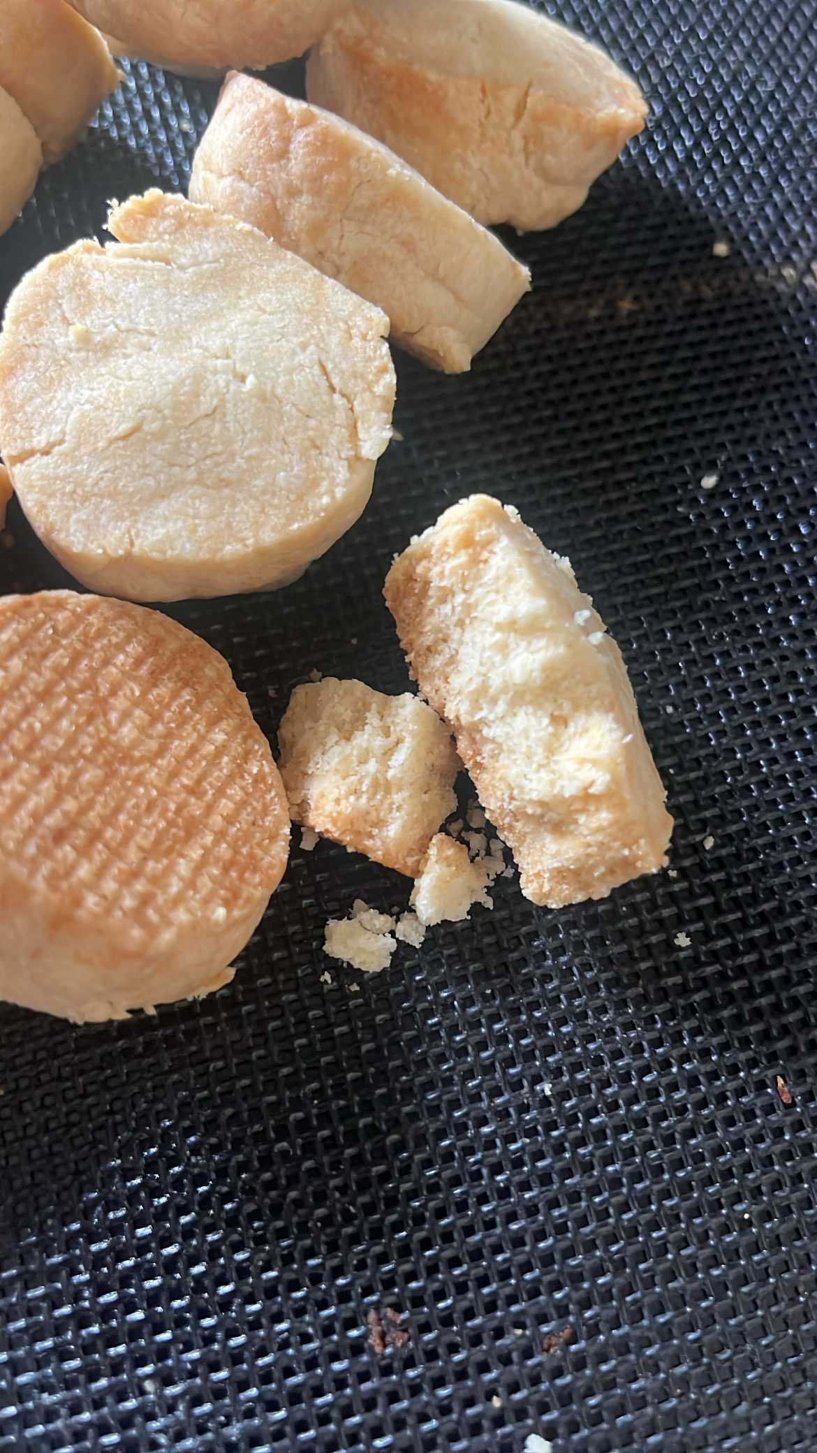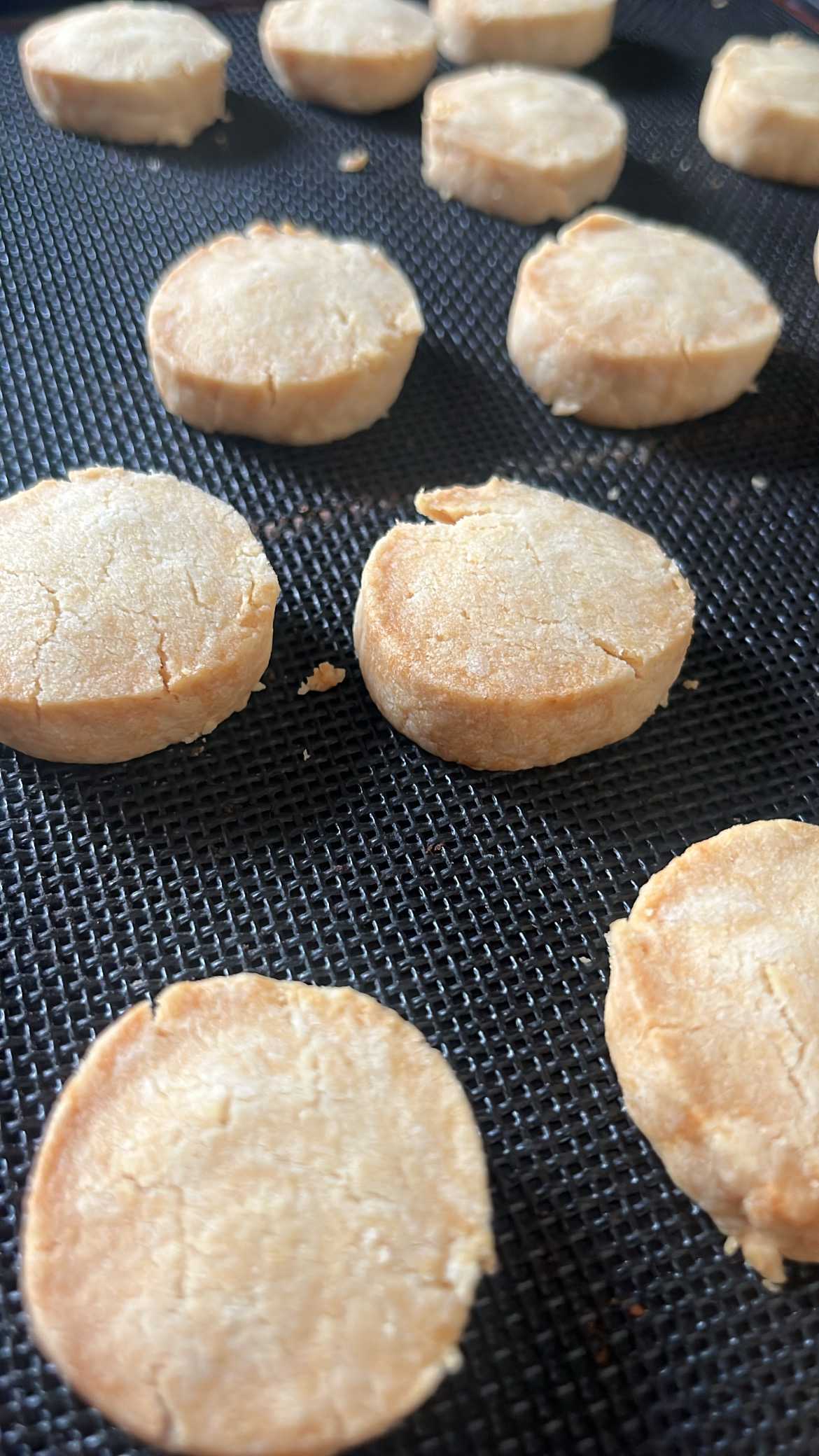 生クリームを少量使うのがネックで、余ってた植物性クリーム使ったからなのか😅普通のオイルクッキーと変わらない😅動物性クリーム使ったらどんなに変わるんだろう?甘いの苦手なので、周りのグラニュー糖は無しにしましたが、それでもしっかり甘さはありました。素朴な感じなので、今度はバニラ入れて作ってみようかな。