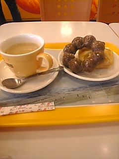 カフェオーレが飲みたかったので、お昼休みを完全にオーバーしちゃいますが、食べて帰ります。
