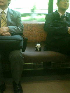 電車内で、平然と人間達と並んで座る小さなパンダに出会いました
