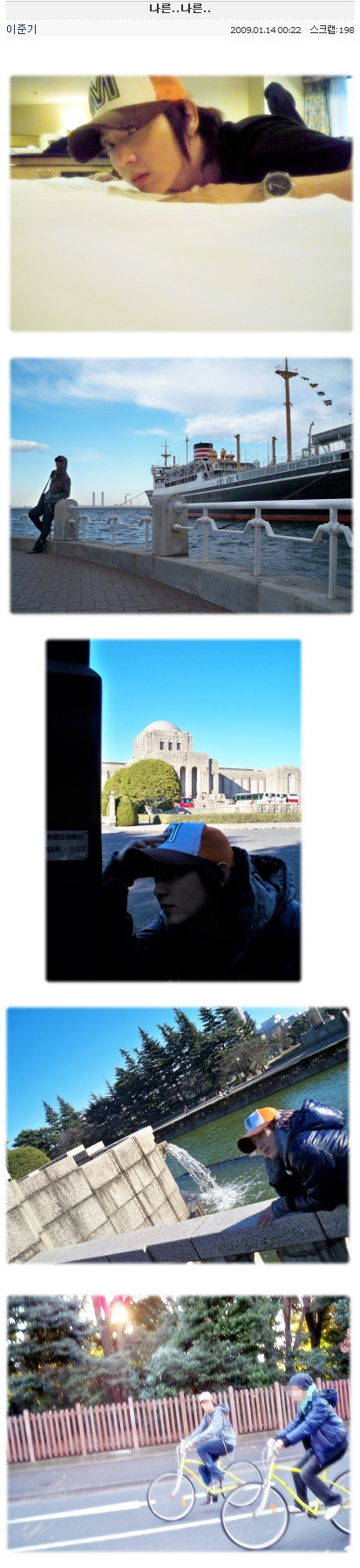 このところ忙しかったのですっかりブログをご無沙汰していましたジュンギってば来日していたんですね今日のジュンサにも横浜の写真等がアップされていました韓国の日刊スポーツにも記事が出ていたので掲載します イ・ジュンギが日本で有名税を払っている。イ・ジュンギは去年SBS TV '2008演技大賞'でドラマ『イルジメ』で最優秀男演技賞を受けた後、去る9日から日本東京で静かに休息を取っている。だが秘密維持のために専門担当マネジャーと二人きりで離れたのが面目を失うように「東京でイ・ジュンギを見た」という目撃談が日本ファンクラブ サイトにリアルタイムに上がってきてイ・ジュンギ側を驚かせている。イ・ジュンギの日本ファンカフェには12日「渋谷路上でイ・ジュンギを見た。帽子を目深にかぶっていたが一気に気付くことができた。 とても震えて近付けなかったがイ・ジュンギがファンたちを意識したようにはやく席をはずした」という内容の文が数回上がってきている。特に日本のスポーツ演芸専門紙の産経スポーツのウサミ・アキヒコ記者も自身のブログに10日「イ・ジュンギと酒を飲んだ」という自慢性(?) 文を載せて目を引いた。彼は文で「偶然に東京のある酒場でイ・ジュンギとあった。酒杯をやり取りする機会ができたがイ・ジュンギは本当に礼儀正しい青年だった。所属会社問題のためにその間骨を折ったというのに,これからは演技にだけ専念できたら良いだろう」と伝えた。イ・ジュンギの所属会社のメントエントテインモントゥ側は13日「イ・ジュンギが所属会社を除いた誰にも知らせないで日本に行った。しかし彼の行跡がリアルタイムに上がってきていてびっくりした。休もうとして行ったものだが自分を見知る人々のために酒も気楽に飲めないほどだ。 韓国には正月連休ぐらい帰ってくることとわかっている」と明らかにした。イ・ジュンギは最近中国語圏と日本で人気が急上昇している。今月の初め日本国内韓流ポータルサイトのイノライフが今年のはじめ実施した'2008最高活躍像を見せたスター'で1位を占めたし、中国国営放送のCCTVが実施した'2008最高人気海外スター'部門でも1位に上がった。ドラマ『イルジメ』の製作会社のチォロックベムメディア側は「去年11月から日本衛星チャンネルソネットで『イルジメ』が放送中でイ・ジュンギに対する反応が熱くて、今春『イルジメ』関連本も出す計画」と伝えた。