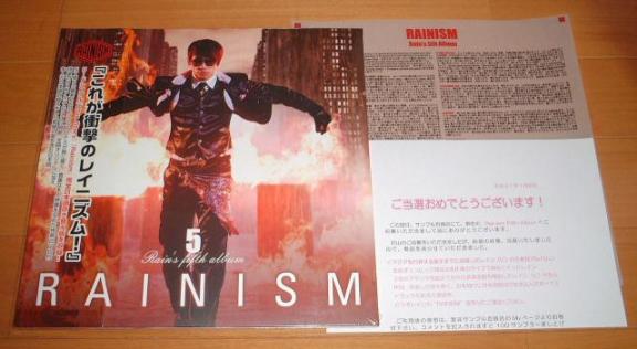 昨年末応募した「サンプル百貨店」さんの太っ腹企画 “RAIN(ピ)”のNEWアルバム『RAINISM』プレゼント商品を無事受け取りました有難うございます~~嬉しいですジャケットは写真で見たときより実物の方が素敵でしたただ紙ジャケなのですぐに傷が付きそう先日来日した際の映像をワイドショーで見たのですが、見た目は純朴そうな青年ですよね(ごめんなさい)しか~し!アーティストのRAIN(ピ)はカッコイイちょっとハスキーな声、そして男の色気があるんですね~ やはり韓国を代表する歌手であり俳優なだけありますね。歌唱力、ダンスともに本当に素晴らしいこのアルバムのうたい文句どおり!「洗練された男性美を強調し、成熟した魅力を表現している」なにせジュンギ以外はほとんど韓国の俳優さんやアーティストが分からない私。。。もちろんジュンギ命(笑)ですが、今回はRAIN(ピ)君のおかげでK-POPにもちょっと興味を持ちましたちなみに「サンプル百貨店」さんでは、1/31まで『RAINISM』プレゼント企画第2弾を開催中です。200名にプレゼントなので興味のある方、まだお持ちでない方は応募してみては如何でしょうか ※商品の内容とは関係ない画像も使用しています。あしからずご了承下さい。