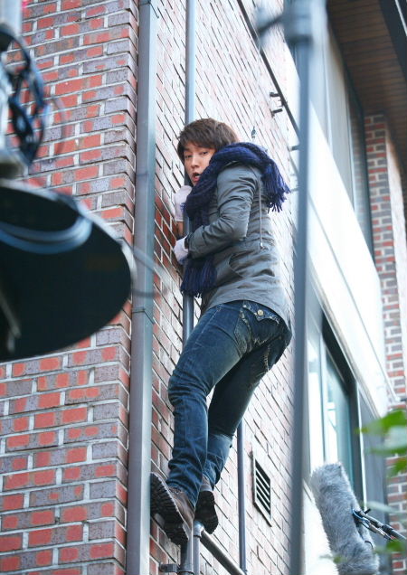 [スポーツ朝鮮T―ニュース パク・ヒョンミン記者] イ・ジュンギがスパイダーマンに変身した。 MBC水木ドラマ『ヒーロー』で熱血記者チン・ドヒョクを熱演しているイ・ジュンギは真っ赤なマントの代わりにロープに乗って宙を飛んだスーパーマンに続き、今回は壁に沿う人間スパイダーマンの姿を見せた。 去る11月26日4回放送分でドヒョク(イ・ジュンギ)はPマダム失踪事件の糸口を見つけるためにジェイン(ユン・ソイ)とそれぞれ捜査と取材に着手したが特別な進展がないと、とうとう自ら実践に出た。 壁外観にピッタリくっついて、ガス配管を踏んで壁に沿って上がるドヒョクの姿はまるでスパイダーマンを連想させた。『ヒーロー』の製作会社ユニオン・メディア動物園のある関係者は、「撮影日は、よりによって気温が大きく下がって今年の冬に入って最低気温を記録した日だった。一日中外で竝びにぶら下げられたイ・ジュンギは全身がカチカチに凍りついた程に苦労を多くしたが、むしろスタッフの心配をたくさんしていた。撮影中ずっと独特のユーモアで撮影現場の雰囲気を愉快で温かく導いた」と伝えた。 一方『ヒーロー』は4回分末尾で紆余曲折の末、創刊号を発売したヨンドク日報の前に大きな危機が吹き荒れる姿が描かれた。 これにあきらめない執念と足で走る熱血記者精神を身をもって示し、全力を尽くしているドヒョクが本格的に繰り広げられる大勢日報との正面勝負に熱い一本勝ちを見せられるか視聴者の関心が集められている。