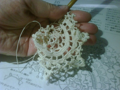 雨が降っています。いよいよじめじめの梅雨でしょうかね?今日はゆったりとした日で先ほどまで編み物をしていました。NHKFMを聴きながら編み物をするのが私の日課。今日はピリスのピアノを聴きながら編んでいました。しかし、ピリスって凄いピアニストですね。音楽の塊みたいなものを感じたショパンでした。今、編んでいるのはレースのすっごい細い糸で40番のもの。これは初めての挑戦でちょっといら!っとしながら編んでいますがようやく慣れてきたような感じです。不思議なことに夜のほうがよく見えるのはなんでなんだろうか?慣れてきたということかな?写真が作品の一部。まだまだですが、モチーフなので繰り返し、繰り返しの作業です。