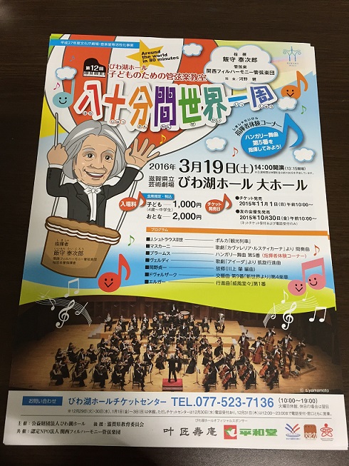 今日はびわ湖ホールにて演奏会でした。朝はほんの少し雨が降っている中、駅からホールにむかいました。お昼には晴れて気持ちがいいものでした。そして今日のマエストロは飯守泰次郎!すべてにおいて重厚な音楽が並びました。いつもしているような曲目ですがとっても音楽があふれています。今回のタイトルは80分間世界一周。オーストリアにはじまりオーストリアに帰ってきました。飯守さんの頭には帽子!車掌さんみたいに白い手袋も・・・でも帽子が、、、、、大変なことになっていました。楽しい時間も80分。指揮者コーナーもとっても楽しいものでした。しかし私!帰りの電車で唇がむずむず・・・・・・・・・ヘルペスができてしまいました。早く寝ないとダメですね。そして家で楽器に足をぶつけて数週間、朝には爪がはがれる夢をみました。痛かったんです。一時は治っていたのに爪を切って手入れをしたらまたダメになってしまいました。ほっておけばよかった・・・・・・・・・・なんだか晴れ晴れしないな、、、この唇。。。。。。管楽器奏者だったら大変!薬つけて寝ます。