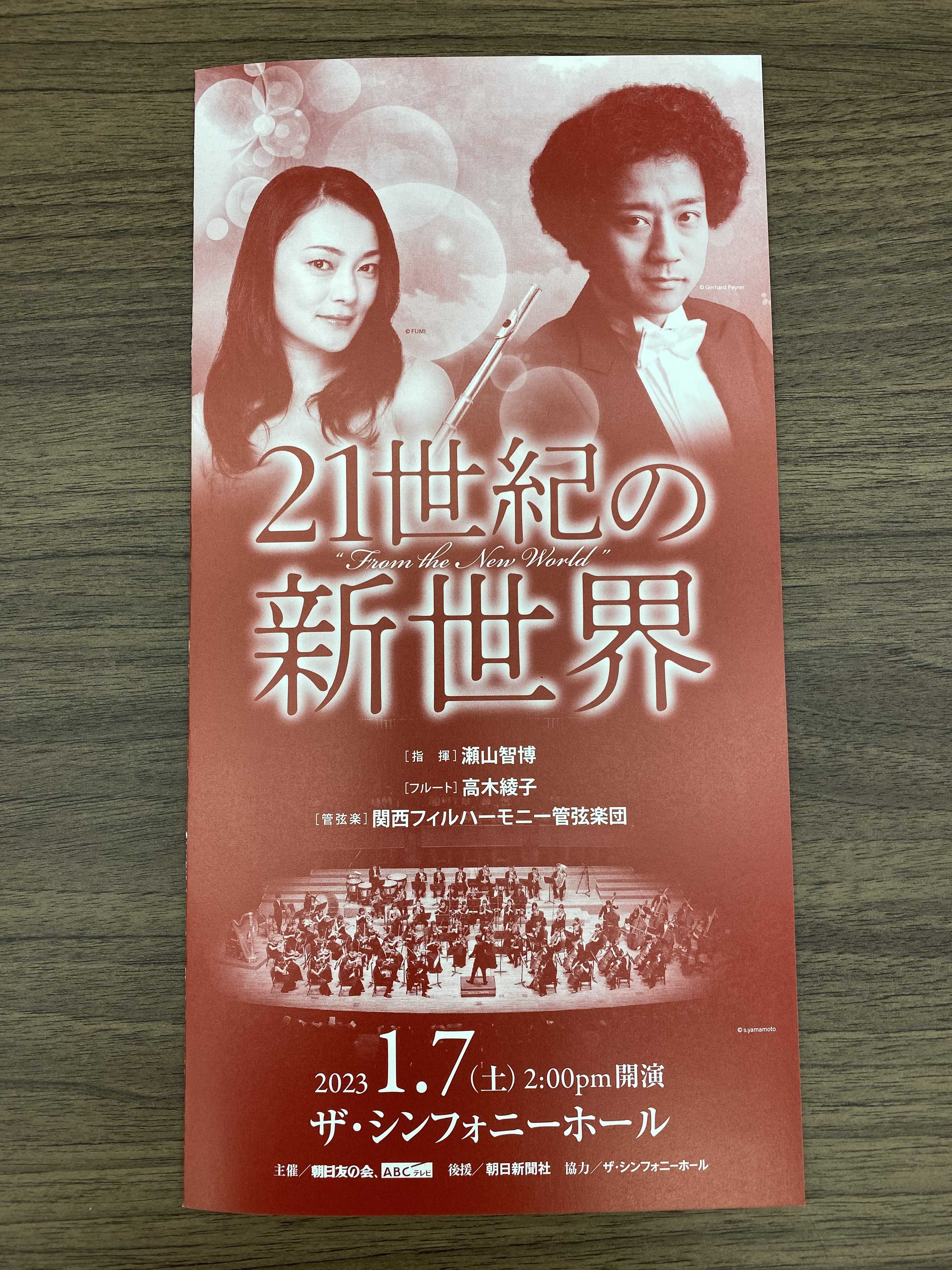 今日はシンフォニーホールにて「21世紀の新世界」公演でした。ソリストの高木綾子さん、凄く美しくてウキウキしました。もちろん演奏にもうっとりでした。え!お子さんが3人もいるって!そんな風に見えません。演奏してお母さんもしているなんて女性の鏡ですね。お若い頃にテレビのコマーシャルに出てらしてやはり美しくて驚いたけど今も素敵でした。新年初めての演奏会にはぴったりの演奏会となりました。今年も宜しくお願いいたします。