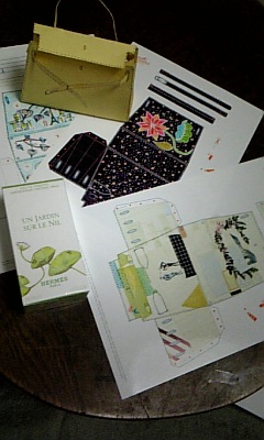 一昨日、お友達と購入したエルメスのフレグランスが宅急便で届き、ついでにのぞいてみたエルメスのサイトで発見したこの紙のケリーを作ろうとコピーしたんですが、最小のA4しかなくちいさいものを作ることにしました。黄色いケリーはA3で作ったのでかなり大きめですがもっと小さいのができることでしょうね。