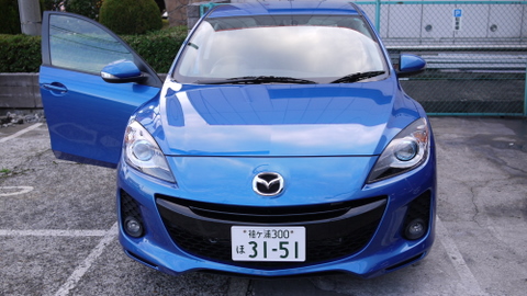 こんばんは今日は、午前は病院に行ってきまして、午後からはマツダに行ってきました。愛車のマツダセーフティーチェックを受けている間、アクセラの試乗してきました。JDF(JAPAN DRIVE Fest)に参加しました。点数は、4.7点!安全運転ですから、これくらいでしょう。でも千葉県で200名近く登録されている中の68番目でした。う~ん、上には上がいますね。もちろん試乗だけではなく、写真も撮影してきました。フェイスがしまった感じでGoods!横のラインも、プレマシーのような装飾がない分、早そうに感じます。SkyActive+Sky Gエンジンですね。まとまっており、エンジンルームもスポーティに仕上がっています。ハンドルは三本スポークで取り回しもよく、ボタン配列もわかりやすいですね。シフト周りですが、他社のようなゴテゴテ感が無くマツダらしく引き締まっており、操作感も良い感じです。後席も格好良いですよ。座り心地も良いです。前席も広く、しかし、運転に集中できる良いシートです。この車は10・15モードで実に、26km走行というスペックながら、アクセルを踏んでからの加速感は、我が愛車よりも良い感じでした。。。プレマシー。もっさり感が。帰宅時、点検を受けて調子がよいはずの愛車でしたが、心なしか非力で、残念な車に感じました。。。でも、この車の真価は走りではありません(え?)!明日、ちょっとしたイベントがあり、私の持っている音響機材が昼から利用されます。もちろんミキサー担当は私。なぜかマイクが一本、マイクケーブルが数本無くなっているのですが、気にしないで行こうと思います。スピーカー2本積んで、ケーブル類やミキサー・CD/カセットデッキ・MD・などを一台で積める凄い奴ですからね。明日はフルに頑張ってもらいます。あ~、SkyActive良いなぁ~。