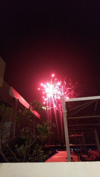 おはようございます 昨日、帰宅時にアクアラインを使ったのですが、業務連絡するために海ほたるに寄りました。 そうしたら丁度、10分だけの花火大会でした。 壁が写っているのは、駐車場からのためです。 さて、仕事ですね。