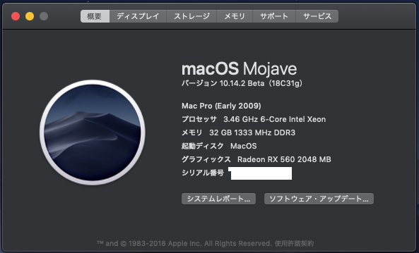 こんばんは昨晩になりますが私の使用しているMacProのOSである、macOS Mojaveが10.14.2にバージョンアップされました。かなりβ版の更新が早く、不具合を見つけることができないくらいです。今回は10.14.1からマイナーバージョンアップの、10.14.2となりました。動作的にはもっさり感があるのは、SSDではなくてHDDであり、さらに古いからだと思います。仕事をしないとパーツを購入することはできませんが、まあ、そこそこ動いています。macOSをよく使うようにしていますが、操作感はそれなりに慣れてきました。ただ、Windowsと違い、TVチューナーが利用できない点ですね。テレビが見れないのは、案外辛いです。それをなんとかしないと。あとは今の所、問題ないですね。CPUもシングルではなく、デュアルにしたいし。夢は広がりますね。これで9年前の機種なんですから、ハイエンドPCは長持ちします。良きことですね。