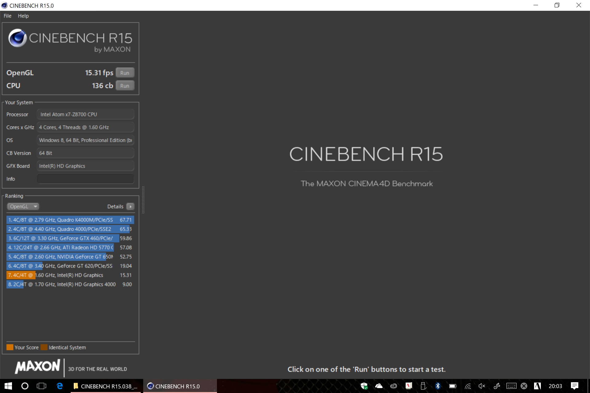 今では定番のCINEBENCHを使って、両機の客観的なデータを取りました。