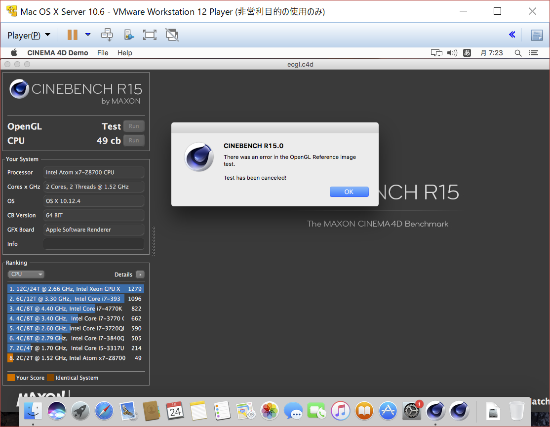 ちなみにVMwareを使ったMacOS Sierraでのベンチマークはこちら。