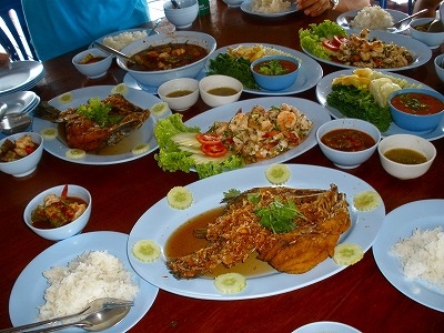 タイではじめての2連休♪ローカルが企画してくれた1泊旅行へ行きました。この様子を数回に分けて紹介します。写真を印刷したパンフレットを作ってくれたものの、場所の名前見てもさっぱりわからないミステリーツアー(笑)でも、タイならではの体験満載な良い体験が出来ました♪ホテルからローカルの車に乗ってチョンブリからモーターウエイの344号線を南下。目的地は200kmぐらい離れた所らしい(笑)です。途中、休憩に寄ったガソリンスタンド。タイのガソリンスタンドは日本のドライブイン?道の駅?みたいな商業施設が併設されてる所が多いです。タイではこんなオブジェが流行ってるらしい。(^^ゞ池に居た体調2m超え!!の巨大熱帯魚。残念ながら尻尾部分だけしか撮影出来ず。(T_T)水を吹くゾウさんがカワイイです。ゾウの像(笑)がタイらしいですよね~~~どんどん南下してRayong Bann Payという場所で昼食です。ここで帰省してたローカル1名と合流。パッタイ(タイの麺料理)が美味しいと有名な店らしいです。お店の目の前はお寺。タイのお寺はみなハデハデなんですよ~~~こんなランチを食べました。辛いよ~~~。辛いよ~~~。(笑)次の目的地へ行く道すがら、タイ・ヤマハで生産するスクーター「フィーノ」のツーリングイベントに遭遇しました。思い思いにカスタマイズされたスクーターが、その数、なんと数百台!!凄い規模のイベントだぞ~~~様子は動画でお楽しみ下さい。↓ ↓ ↓ ↓ ↓THAI YAMAHA FINOのツーリングイベント posted by (C)JUNSA動画の声はJUNSAではありません。(^^ゞJUNSAは黙ってますから。(笑)色々しゃべってますけど気にしないで下さいまし♪JUNSA@タイ王国アマタナコンのホテル1泊旅行記はまだまだ続く♪