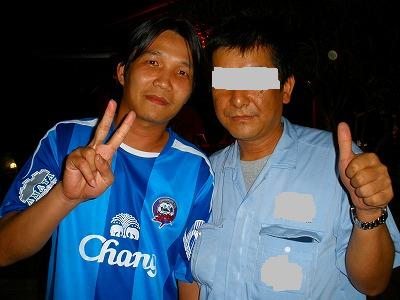 JUNSAが滞在しているチョンブリ県にはチョンブリFCというサッカークラブチームがあります。2007年のタイ・プレミアリーグで優勝し、2008年のACL(アジアチャンピオンズリーグ)でガンバ大阪と同グループで対戦したチームです。2009年のプレミアリーグ成績は現在3位。タイの中でも強いクラブチームですね。でね。子供の頃からサッカーやってる会社の同僚が前々から、チョンブリFCのユニフォームが欲しいって言ってたのですね。タイってヨーロッパサッカーには物凄く熱中してるけど、自分の国のサッカーにはまるで興味が無い。(笑)だから、チョンブリに住んでるローカルに何処でユニフォーム売ってるか聞いても誰も知らない。(^^ゞ下手するとチョンブリFCの存在自体も知らない!!プレミアリーグの優勝チームなのになぁ。(笑)先日、タイ料理の店でローカルとミニミニパーティーしてたら、チョンブリFCのユニフォーム着た一団が居るじゃないですか!!どこから見てもサポーターな集団にローカルがユニフォームを何処で売ってるか聞いてくれました。知らない人に平気で話しかけるのもタイ人の特徴。タイ人皆兄弟なのです。そしたらね。その中の一人が現役選手だって言うのですよ。本当か?こういう輩は分からないと思って平気で嘘言うからなぁ。まぁ、同じ会社のローカルの子達が「本物だよ♪」って言ってくれてるから一応信じる事にしましょう。一応ね。(^^ゞ本当なら超ラッキーなので一緒に写真撮りました♪普段はアマタナコン工業団地内にある某日系企業の大きな工場で働いてるのだそうです。ホテルに帰って背中に掲げてた背番号5の選手を調べようとチョンブリFCのオフィシャルサイトを見たのですが、選手紹介ページへたどり着く事が出来ず。残念。なんか、色々面白い事があるね。タイって♪JUNSA@タイ王国アマタナコンの田舎ホテル今日も明日も仕事はお休みです♪で、今日はバンコクに出て観光に行きます♪またブログネタがたくさん生まれる事でしょう。お楽しみに~~~