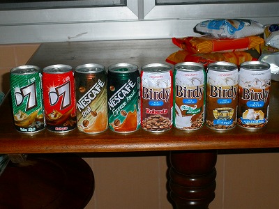 普段、コーヒーが大好きなJUNSA。町へ出ればコーヒースタンドがあって、カップに入れたベトナムコーヒー風の飲み物が楽しめます♪でも、ホテルは町では無いのでオーダーは出来ず。(T_T)手軽に飲むには缶コーヒーですねぇ。でね。ホテルの隣りのセブンイレブンで売ってる缶コーヒーを全種類買ってきました。タイの物価で大人買いです。(笑)タイの飲み物は甘くない物はほぼ皆無。(^^ゞブラックの缶コーヒーにも砂糖が入ってます。色が黒いからブラックなのです。(笑)だから飲み比べなんてしなくとも全部が全部、超甘いって分かってるのですけどね。(T_T)JUNSAはタイの飲み物を、砂糖飽和水溶液と呼んでます。これ以上砂糖溶けないよ!ってぐらい甘いですから~(笑)JUNSA@タイ王国アマタナコンのホテル
