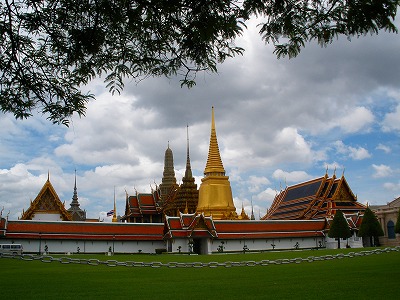 バンコク日帰り観光の続きです。いよいよ、とても美しいワット・プラケオ(エメラルド寺院)に入ります。チケット売り場に並んでたら、兵隊さんの行進に出会いました。↓ ↓ ↓ ↓ ↓タイの王宮を警護する兵隊さんの行進 posted by (C)JUNSAチケットは値上がりしてて350B。高いなぁ。ワークパーミット持ってれば安くなるって聞いてたのでパスポート持って行ったのですが、ダメって言われちゃいました。(^^ゞそういう制度も無くなっちゃったんだなぁ。ちなみにコン・タイ(タイ人)は無料。だから一緒に行った通訳さんは無料です♪王宮入り口から入ってすぐの定番写真スポットです。緑の芝に原色の建物。黄金の塔。青い空。白い雲。ホント美しい!この黄金加減が凄いんです。貼りめぐらされた宝石。贅の限りを尽くした装飾の建物は他に例を見ないのではないでしょうか。風鈴の幻想的な音に包まれて心が洗われます。ブログで音も一緒に伝えるにはヤッパ動画でしょう~♪↓ ↓ ↓ ↓ ↓エメラルド寺院の雰囲気をお楽しみ下さい posted by (C)JUNSA金金キラキラ。これがシンハーなんだそうです。タイのシンハービールの絵柄ですね♪ワットプラケオから美しい王宮に入ります♪ゴチャゴチャな大都会バンコクの雑踏を離れ、のんびりユルユルと美しいお寺を観光。タイらしさを満喫したのでした~~~王宮からタクシーに乗ってホテルへ帰る車が待つチットロムへ行って今日の観光はおしまい。楽しかったです♪JUNSA@タイ王国アマタナコンのホテル次の日記のネタは翌日繰り出したサイアム散策です♪