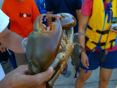 タイのチャンタブリでのアロハ・ホームステイ一泊旅行の続きです。ここはカニの養殖ファームなので、カニ取り体験をします。エンジン付きのボートに乗って、籠を引き上げると見事にカニが入ってる!!それで取れたカニがこれです。カニの説明してるところの動画↓ ↓ ↓ ↓ ↓タイのカニ養殖 posted by (C)JUNSAまだ明るいうちに夕食が始まりました~~~食べるのはもちろん、カニ!!宿泊する小屋の前に大きなゴザを敷いて夕食パーティー。1ケース買ったビールで飲み放題状態!!(笑)アリが集っても払って食べる!!(^^ゞハエが集っても払って食べる!!(^^ゞそれがリアル・タイですよ。うん。お腹がイッパイになったら、酔っ払ったまま遊ぶ!!(笑)仲良くボートに乗る同僚達。顔が特定できないように小さい写真ね。(笑)すっかり日が落ちると星降る夜空です。星が物凄く綺麗!!この光景を残したい!!と頑張ったんだけど、残念ながら写真は撮れませんでした。(T_T)そして、ココの名物のホタル鑑賞。また船に乗って、広大な海水池をグルリと回るとアチコチにホタルの光!!タイではホタルが半年くらい見れるそうです。タイの田舎出身のローカルは珍しくないと言ってましたが、日本じゃそうそう見れませんからねぇ。良い体験が出来ました~~~。夜が更けるとその後は酔っ払いパーティーです。(笑)タイの人はパーティーが大好き!!飲む時は飲む!!とことんまで飲む!!何時まででも飲む!!カラオケで踊り狂う!!大騒ぎが大好き♪それがタイ風なんです。まるで子供のように遊びまくる同僚の彼女達はアルコールを一切飲まないのに、それでも狂ったように遊ぶ!!踊りまくる!!(笑)ハイテンションですっかり疲れて午前2時。(笑)一応シャワーと呼べそうな所(^^ゞで汗を流して寝ます。これだけ飲んで疲れてれば、あの小屋でも寝れるってもんです。(笑)当然、蚊もたくさん居るのですが虫除けで武装。タイなのにとっても涼しくて、エアコンが無くても爆睡です。さて、夜が明けたら二日目に突入。どうなる事やら~~~な旅はまだまだ続く♪JUNSA@タイ王国アマタナコンのホテル