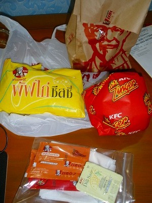 タイ料理に飽きちゃってるもんだから、先日、ケータリングサービスでケンタッキーを頼んでみました。ノックでホテルの部屋の扉を開けると、とびきりの笑顔でお兄さんが配達に来てくれました。(笑)味は日本と同じなんだけど、一人で食べると何だか味気無い。これ、みんなでワイワイ食べるから美味しいんだろうな~今度はバンコクでマクドナルド買って、部屋で食べてみよう。うん、そうしよう。JUNSA@タイ王国アマタナコンのホテル
