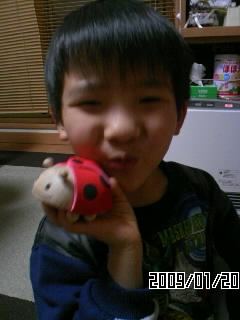 ケンちゃんはオモチャを布団の中に持ち込んでました。