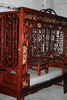 昨日に引き続き,茶芸師グループとご一緒にオーダー家具のお店へグループといっても4人ですが,そのうちのお二人が家具をオーダーしているので出来具合を見に行くということになり私も引き続き参加。友人がオーダーしたベッド↓は既に出来上がっていました。彼女は雑誌の写真を見せてオーダーしたそうです。友人出来具合の大満足。工房では職人さんたちが作業していました。手彫りの家具のための道具↓管理人が気に入った家具↓。2100元を1650元にするから今日もって帰ったら?と商売熱心。オーダー家具は,新しい木材または古い木材を使用して作ってくれる。日本と気候が違うので,古い木材を使って家具を作ったほうがいいようです。古い木を使うと少し値段が上がります。「豊暦芸術品有限公司」電話 81711586 81391282オフィス:広州市文昌北路建隆大街泰興苑 15号204室倉 庫:広州市石井鎮張村風度路28号(黎明電子工場内)私たちが訪れたのは,倉庫。社長が迎えに来てくれることもあるので,電話で聞いてみるといいかもしれない。とてもややこしい場所でした。中国アンティーク