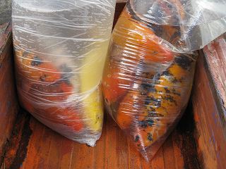 本日婦人会イベント「バスツアー」、過去に何度かご紹介した「珈琲市場」と「花地湾花鳥魚市場」へ今回は日通様からバスのご提供をしていただきましたので参加費は無料!でした。日通さま、ご協力ありがとうございました!珈琲市場では40分の短い買物時間でしたが、珈琲やフルーツティーを購入。花鳥魚市場では・・・お決まりの袋入り鯉ちゃん写真。いつみてもすごいですねぇ~木製の鳥かご↓鳥、鳥かご、そしてエサを販売しています。↓豚ちゃんもいました。500元/1匹 まさかペット? 食用だそうです。(^_^メ)まりもが・・?と思ってよ~く見ると人によって作られた藻の玉でした。笑水槽用の植物 、木に植物が生えているものは25元、これを買うと小さい藻は無料でした。蓮の花、一鉢6元(約90円)でした。安っ!そしてポチへのお土産はコレ↓以前買った止まり木は細すぎるので同じものを並べるつもり。今回はなんと1元(15円)でゲット!エサ用容器も以前購入しましたが・・・ この容器は鳩を売っている店で購入。卵もあったので鳩の卵を売っている?!と思ったら偽物でした。笑 エサ用容器と卵は6元のところ5元(75円)にしてもらいました~このニセ卵をポチのケージに置いておくつもり。帰ってきた相方君(帰宅したら先ずポチに挨拶)はどんな反応をするか楽しみ。(*^m^*) 皆さま、お疲れ様でした!