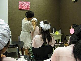 婦人会の協賛店として加わっていただいたお店「アルビオン化粧品」が会員の皆さんに「美容講習会」なるものを開催してくださった。秋のスキンケア方法とビューティーアドバイザーの指導で実際にみんなにあった商品を使ってスキンケアの方法などがテーマ参加できる人数は10名と少数だったので応募者が殺到したらどうしよう!と思いましたが・・・「化粧を落とす」がネック? 10名にも満たなかった。肌のシステムについての講義のあと、↓の写真のようにみんなで化粧を落としていきます・・・「この人はだれでしょう~!?」なんて状態にはなっていませんよ、皆さま化粧を落としてもそれなりに・・お美しい。ビューティーアドバイザーが出席者の肌についてコメント管理人はセンスィティヴなお肌。面の皮は厚いくせに、実際の面の皮は薄いのです。最後に小姐たちに全員がフルメイクをしていただいた。もう、みんさん見違えるようでした。やっぱり高級化粧品店に勤める小姐だけあって、みんな化粧が上手。はい、管理人もこんな風に変身・・・・・・・・・・・はい、嘘です。哀まっ、店側は商品を知ってもらいたいのと販売したいという目的ですが、いつもと違ったメイクをしてもらう目的で参加するのは面白いかもね。よく聞く話ですが、フルセットで購入すると、化粧品がなくなるまでエステをしてくれるそうです。ちょっと管理人も心が揺れております~、でもねぇ お高いのです。相方「エステde金ステ」といつもの一言。この講座来月もありますよ~~