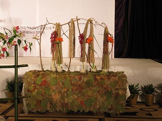 2008中日青少年花芸交流展覧が、12・13日の両日開催されました。香港在住のフラワーアレンジメントの先生・水上雅夫先生がいらしてました。先生の作品↓北京オリンピックでも仕事をされたそうです。婦人会ネーム入り名刺をお渡ししたら・・「もうフラワーアレンジのデモンストレーションはしませんから・・」と何も頼んでいないのに断られてしまいました。苦笑子供たちが日本の歌を披露モデルさんたちはアレンジした花の小物を身につけてます。ガーデンホテルロビー↓のフラワーアレンジメント子供たちのフラワーアレンジメントの競技があり、日本人の子供たちも何名か表彰されていました。広東フラワー協会会長に婦人会でもデモンストレーションを!とお願いしたら、快く引き受けてくれました。スケジュールがあえば実現するかもしれません。この方のアレンジも素敵です。芸術の秋、お花の絵でも描こうかなぁ~