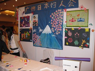 本日チャイナホテルで「Japan Day」が開催されました。中国の方々に日本をもっと理解していただくことが目的。日本のりんご、なし、お茶、お酒、米などを試食、日本から旅館の女将が着物の着付け・お茶体験、宮城、福井、鹿児島、沖縄、兵庫、長野各県が観光キャンペーンなどのブースがあり、多くの方が訪れました。婦人会ブース↓ 特に午前中に訪れる方が多く、黒山の人だかり。役員は中腰で訪れた方々に「紋切り」を指導。午前中、役員のみなさんが忙しくしているとき、わたくしめは別件の任務・日本語エッセイコンテストの審査員を務めさせていただきました。今回のエッセイコンテストに約60名の方が参加、その中から優秀な方を4名選び、会場で朗読。審査員から幾つかの質問を受けます。エッセイの内容・朗読・質問の答え等を考慮して審査します。今年はどなたも素晴らしい!!審査員の難しい質問にもスラスラと答え、本当に日本語の勉強は数年だけ?と驚くほど日本語が堪能な学生さんたちがいました。高校生の参加も目立ちましたよ~。今回の優秀者の中に、お母さんの日本留学についていき、7年間日本で過ごした男の子がいましたが、東京大学に留学をしたいとか・・・。ちなみにお母さんは某国立大の医学部。この方は、こちらでホームステイしたい学生さんを探しているそうです。連絡先をいただいていますので、ご興味のある方はご連絡を!日本人学生の皆さま、しっかりお勉強してくださいまし~。この「Japan Day」以外にもガーデンホテルでは「2008年中日青少年花芸交流展覧領奨典礼」、別の場所で「日中エアロビクス交流会」開催されているそうな・・・Japan Dayに参加された皆さま お疲れ様でした。