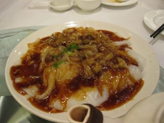 広州へ来て頂いたら、やっぱりご案内するのは「利苑」土曜日で混んでいると思い、予約をしましたが・・・空席ありの利苑。どうしたの??この写真を何回撮影したことやら・・・↓初めて北京ダックを食べた二人は感動してました。ダチョウの腎臓。なかなか歯ごたえがあって美味しい。広東料理ならコレをオーダーしないとね。豚のロースト。ワサビ醤油でいただくとさっぱりしてます。元貝のニンニク蒸。アツアツでなく、ニンニクも少なめ。今回はイマイチなお味。北京ダックのいつもの料理はレタスがなく、葱とダック肉の炒め物になってしまった。↓福建炒飯友人の一人が体調を崩したので、食欲がいつもの1/3くらい(回転寿司なら30皿を食べるらしい・・)。なので↑だけの料理ですみました・・・・。絶好調だったら北京ダック1羽じゃ、足りなかったかも・・・今回の利苑はあんまり活気にかけておりました。お客様が少ないのはハイアットホテルのクーポンの影響?笑魚もあまり種類がなく残念。