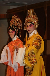 婦人会イベント「広東オペラ鑑賞会」でした。この劇団についてのホームページはこちら。トップページ下に掲載されている写真の中に今日来ていただいた団員さんの写真がありますよ~。ここは政府が運営する劇団で、皆さん公務員さんです。団員は470名ほど、6年間勉強し、劇団員になるそうです。今回出演して頂いたブルーの衣装を着た女性は28歳、男性は22歳だそうです。↑ちゃんと聞いていたはずなんですが、最近記憶力が弱くなってきたので・・多分こんな説明をしていただきました。苦笑団長さんはとてもフレンドリーな方で、お子さんが日本語を勉強しているそうで「さよなら」と挨拶をしてくれました。今回は100名を越える会員の方に参加して頂きました。2名の担当役員さん、お疲れ様でした。さて、以下の写真は2005年度の婦人会役員の皆さまが開催した「広東オペラ観劇会」のものです。2006年2月17日に開催されました。で、当時撮影した写真です。ちなみにブルーの衣装の男性団員さんは↓と同じです。ワタクシごとですが・・・2006年の広東劇に参加したとき、息子は高校入学準備のために帰国しておりました。制服のオーダーのためだったと思います。そして広東劇開催の日に・・・希望学部の推薦をもらったとの知らせを息子からもらい。なんか月日の経つのは早いなぁ~としみじみ感じている管理人です。
