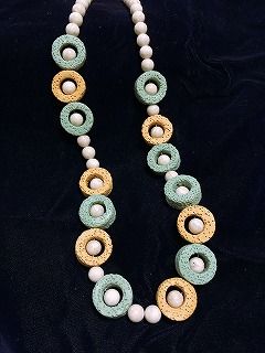 溶岩から作られたビーズ ラーヴァビーズとも言うそれとリバーストーン、マーブル系の石らしい随分前に購入したもの・・・↓はブルーに染めたクリスタルとシェルビーズこのクリスタルは色をあわせるのが難しい↓手前のは淡水パール 写真ではあまり色がよくない1センチくらいの大きさで照りもいい後ろは染めたシェルビーズ 丸と四角を使ってこれは金具に張り付けただけ簡単ピアス