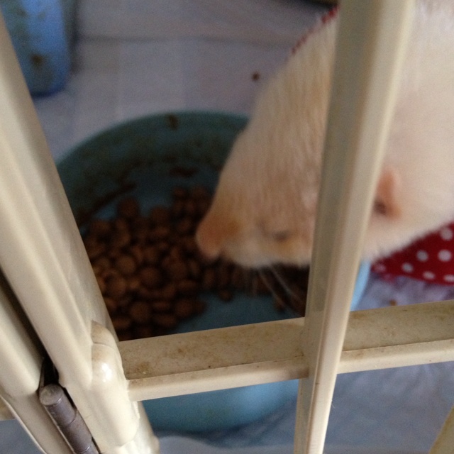 先週から、少し体調を崩しているダッシュ。 フェレット特有の副腎の病気が少しずつ悪くなっているとのこと。 今朝は食欲もなかったので、とても心配だったんだけど、さっき、エサをカリコリ食べていて、何だかホッと安心。 決していい状態ではないけど、それでも嬉しい出来事でした。