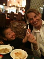 これは、先週のお話になるのですが、主人の上司であるドイツ人の方が、われらがホームタウン津田沼まで遊びに来てくれました。ドイツ人の上司さんは、初来日だとか。それなのに、われらファミリーに会いに、津田沼まで来てくれるとは、何とジェントルマンなの~。・・・とはいっても、だんなさんが、ちゃんとを出して、お迎えに行ったんですがねそれはそうと、うちの3歳の息子は、中年男性嫌い!?の傾向が。エレベーターなどで、この年齢層の男性と一緒になるとなぜか息を止める。ドイツ人の上司を見たら、息を止めるか号泣するか・・・どちらかに違いない~。と思っておりましたが、予想をくつがえし仲良しさんに。身長190cm越えのドイツ人の上司さんと身長90cm弱の息子さんのまるでガリバー旅行記のような組み合わせ。そんな2人を見てほほえましく思う、私たち夫婦なのでありました。