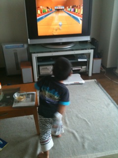先週我が家に導入されたWii。ゲーム音痴の私も、とても楽しんでおります~。そして、何より一番楽しんでいるのは、やっぱりこの人でしょう!3歳の息子君。(もちろん買ってきたパパともいえるけど)平日は、保育園に通っているので、Wii禁止だけど、週末はWii解禁♪今日もWiiリモコンを振りかざして、ボーリングにゴルフに楽しんでいます。