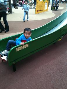 今日は、パパがゴルフDAYだったので、ちょっと電車に乗って遠出をしてみました向かうは、神宮外苑のにこにこパーク。息子も私も電車好きなので、総武線快速、総武線各駅停車、中央線などなどいろんな電車に乗り換えながらお出かけ♪電車の中で、ヨドバシカメラの歌を大熱唱されたのには汗をかきましたが(笑)さてさて本題のにこにこパーク。ものすごい人気のロング滑り台。到着した頃は、それほど混んでなかったんだけどお昼を過ぎた頃から、芋洗い状態。私も息子と一緒に滑ったけど、こりゃ楽しいね。ズボンが摩擦で擦り切れそうになりました(笑)トランポリンもあったよ~。そして、ちょっとスパイダーマン気取り(笑)普通に遊具も充実していたんだけど、それ以外にアスレチックも少しあって、息子的には、そっちのほうが生き生きしてた。これは、急な坂を ロープをつたって登るアスレチック。ちょっと、探検している気分になる小道。「ママはついてこないで!」と言われたわそんなわけで、鉄男と鉄ママの神宮外苑の旅路から帰宅しました。大人300円で、子ども100円。たっぷり遊べて、お弁当持参できるのでこれまたよし!近隣には、サイクリングスペースがあって、子供用ヘルメットを持参すれば子ども用自転車を貸してくれて、サイクリングすることもできるみたい。最後の最後で、それをやりたいと言われたんだけど、寝そうな気配濃厚だったので、今回は断念。またの機会に来ようと思ったのでした。