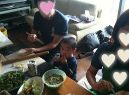 今日はだんなさんのスポーツクラブのお友だちが我が家にやってきて、大人10名、子ども1名の餃子パーティ♪だんなさんは朝からコストコに買出し。私も行きたかったんだけど、息子が留守番したい(←Wiiがやりたいだけ)のひと言で、自宅待機お昼の12時過ぎにみんな集まって、わいわいがやがや、餃子の皮から作成だい!!餃子の種を作って、皮を伸ばして、種を包んで、ジュウッと焼いて180個もの大量餃子のできあがり~。餃子の皮って、手作りするととてもモチモチで、美味しい★★食べ過ぎたわ~。美味しすぎるって罪ね。でもまた第二回を企画してほしいなあ。