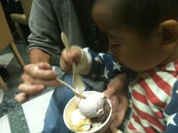 さきょうが、そこを通るたびに、行きたがっていた場所。それは、ラーメン かいざん。子ども心にも美味しそうな雰囲気が感じ取れるのでしょう。かいざんは、カウンター席のみで、イスが高いのでさきょうが1人で座れるか心配だったんだけど、無事着席できました。ちなみに、私は、ここのスープとチャーシューが大好き!!人気は、ねぎラーメン。で、お味はどうだった?さきょうくん?ぷはー、美味しくてたくさん食べたから、お腹ぽんぽんだよ~。ちなみに彼は、本当にうまいものしか食さない・・・。ラーメンかいざん、その人気は本物だと思います!!