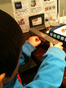 今日は、前々から予定していた秋葉原へ家族3人で行くことに♪せっかく、秋葉原へ行くならば、秋葉原らしいものを体験しようと企画した私。メイドカフェは、お子が楽しめるか・・・びみょーだったのでやっぱりここは、鉄道カフェに行くっきゃないと秋葉原某所の鉄道カフェへ、家族3人で乗り込む。明らかに昭和時代の建物。乗ってる途中でも容赦なくしまるエレベーター(しかも薄暗い)で、4階へ到着。「ご乗車ありがとうございます~」と出迎えられ、ばっちり、大人1人500円の入場料を取られる(笑)しかも、案内の乗務員さん(=店員さん)から告げられたのが、今日はクリスマスイベントのため、車掌服ではなく、サンタ服を着用です。ということと、店内の目玉?の1つ、Nゲージが本日故障のため、動きませんとのこと。・・・ここで引き下がれない、私。案内された座席は、電車のボックス席周りを見渡せば、いわゆるテッちゃんたちが、いたるところに。東海道線のNゲージを走らせるお子。↓ ↓ ↓電車の行き先案内電光表示板のおもちゃを嬉々としながら遊ぶ私。(残念ながら画像はございません)本題のランチですが、前評判どおり、びっくりするぐらいまずい(笑)だんな君は、ハヤシライス、お子はハンバーグランチ、そして私は、オムライス。ここで、オムライスを注文した私には、ケチャップで何かを描いてくれるサービスが☆☆☆私の「萌え」という文字は、だんな君からつまらないと却下されたので、お子に「何描いてもらう?」と聞くと、「中央線!!!!!」という返事が。描いてもらったのが、これ。なんども言うけど、ホントびっくりするぐらい美味しくないですから~。こうして、秋葉原体験学習の1日を終えたのでした。