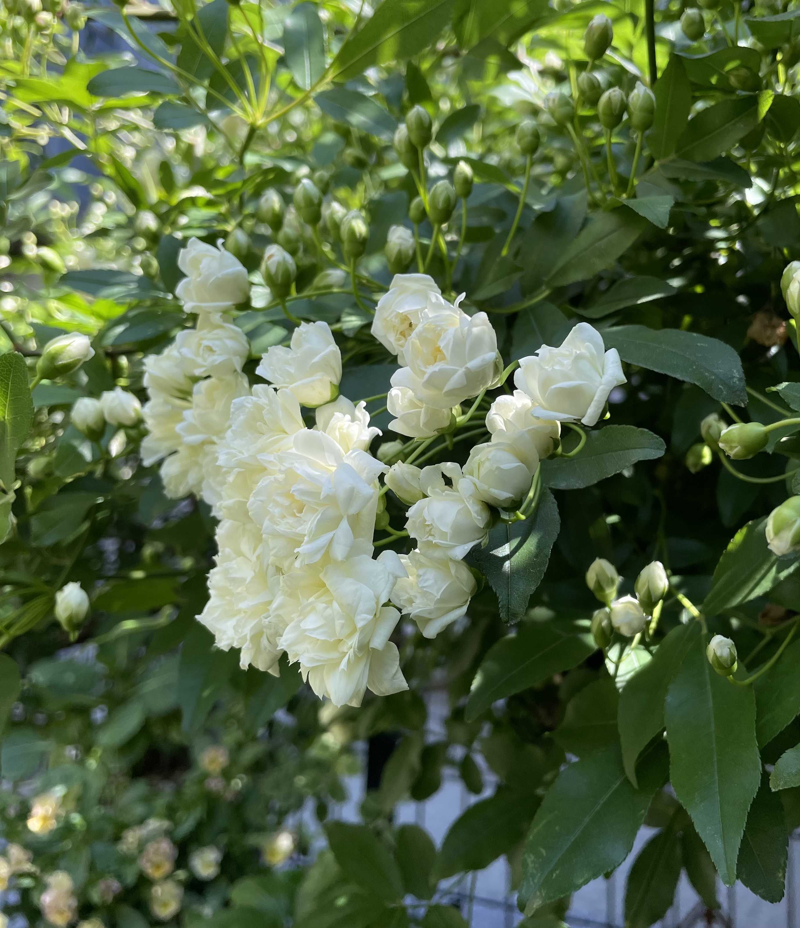 湿度が低く、快適な日です。こんな日は年に何日もないですよね。ハワイとか西海岸とかの海外の空気感です。モッコウバラが開花しました。管理には手を焼きますが、咲いてくれるとやっぱり嬉しい!!鈴なりの蕾。今だけの楽しみ。満開より咲き始めが好きです。うちのモッコウバラは、すぐに茶色くなったり、カサカサに乾燥したりで、満開時に、すべての花が綺麗に咲きそろったことがありません。うっとりです〜このままでいい。さてさて。ホワイトガーデンの我が家のシンボルツリー、ハナミズキの現在は。咲き進んできました。こもれ陽が心地良いです。こちらも、もう少しすると散り始めるな〜玄関ガーデンのラベンダーデンタータの開花。コデマリとのコラボです。今年はコデマリが良く咲いてくれました。春ですね〜