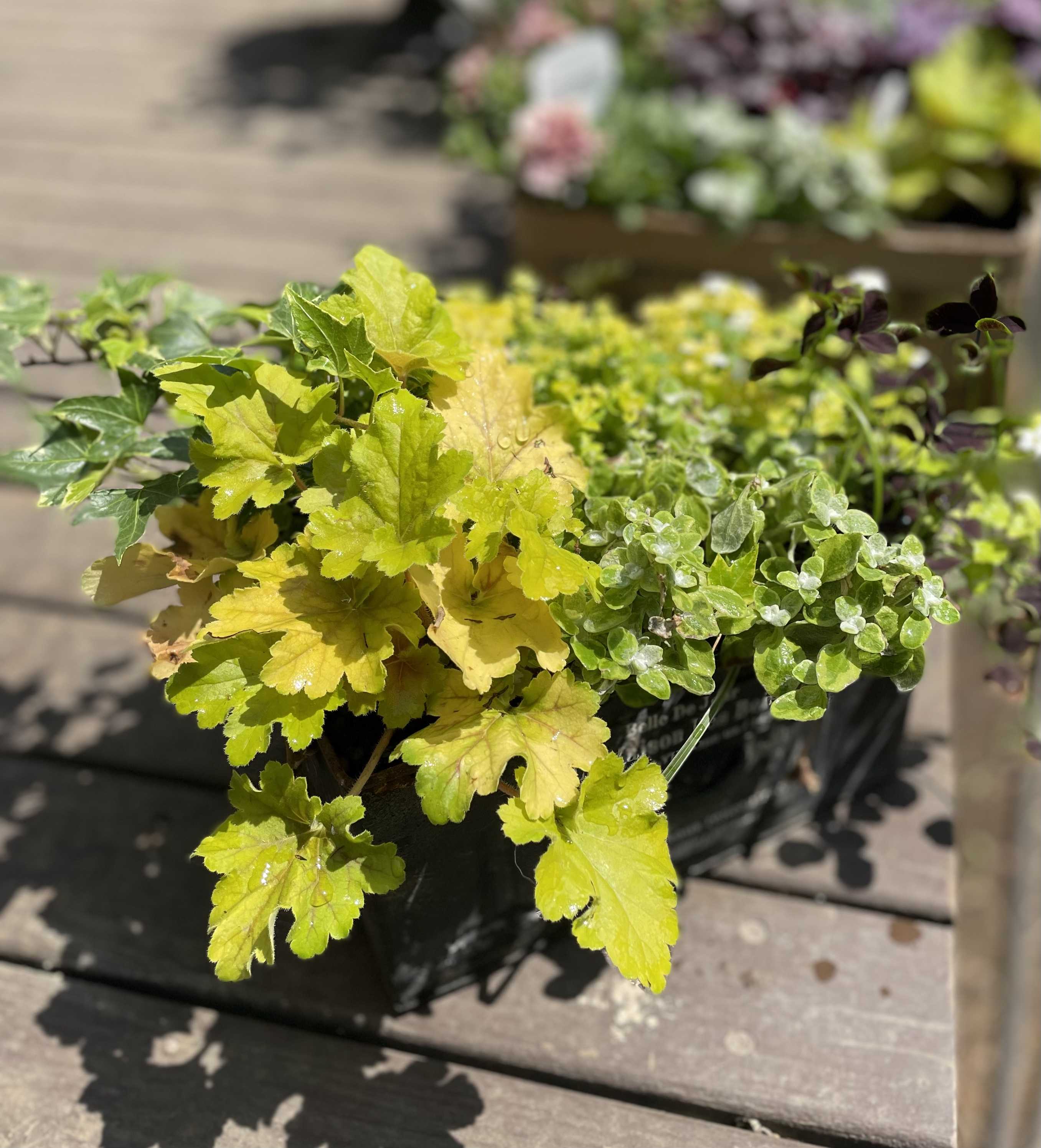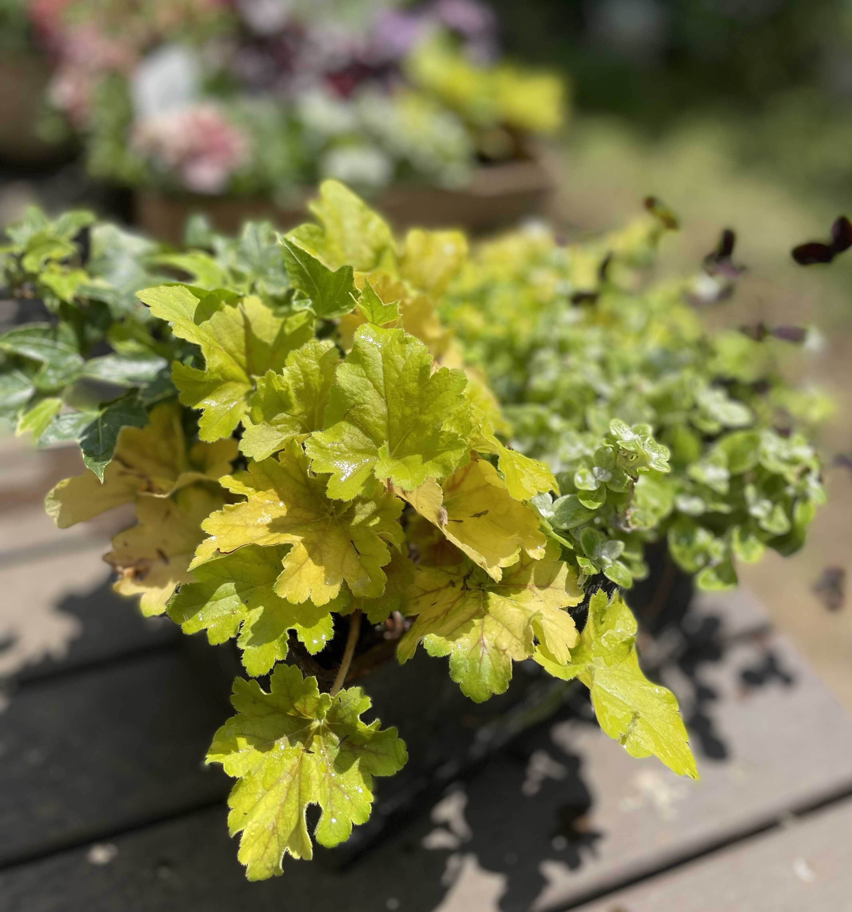 黄色繋がりで、先日作った幸せな黄色い寄せ植えを。