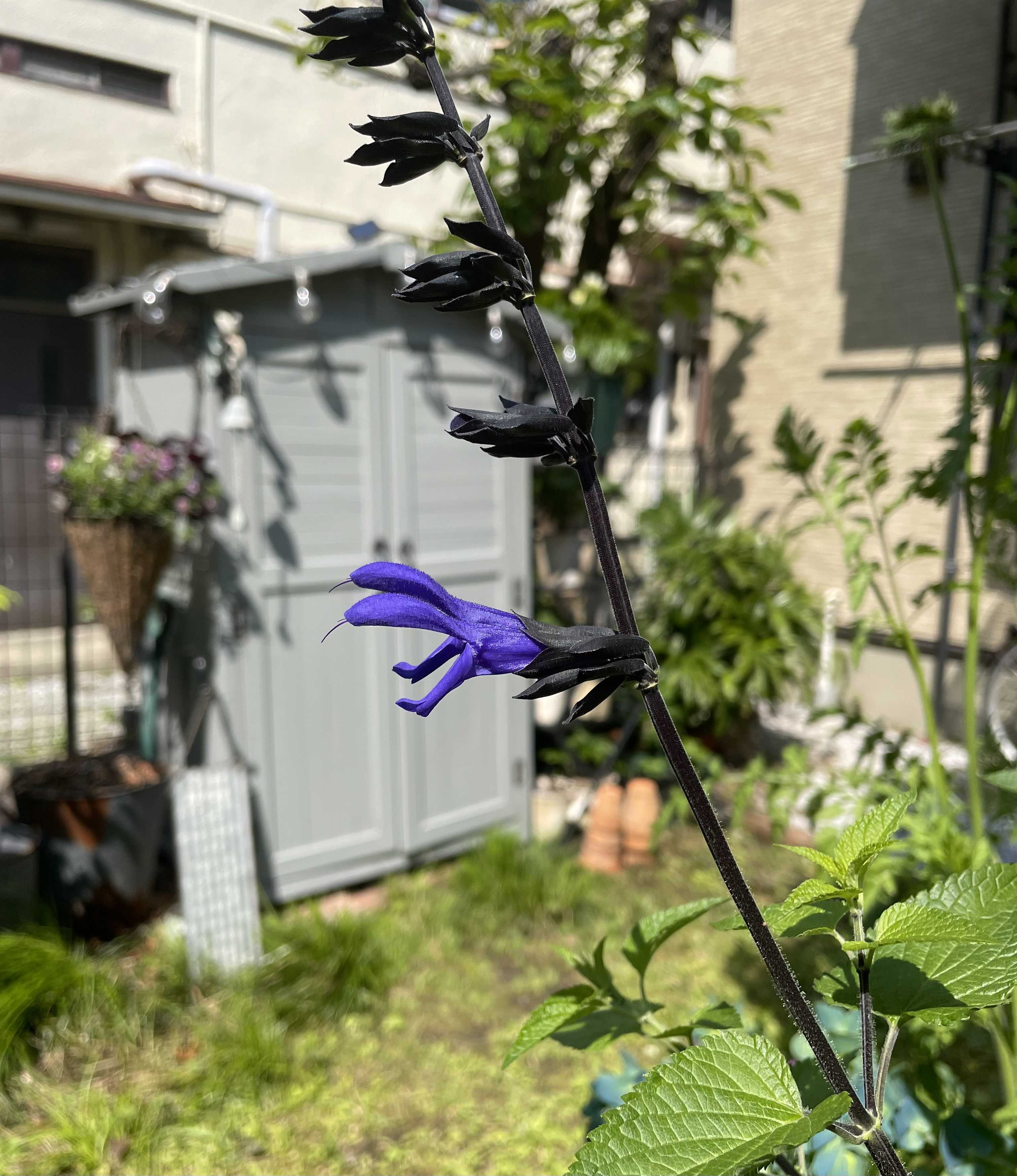 ブラックレースフラワーが私の目の高さまで伸び伸び。