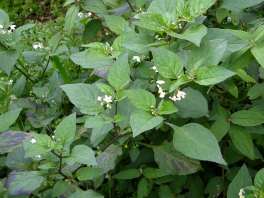[ 大犬鬼灯/大犬酸漿(オオイヌホオズキ) ]東向きの石垣の下で今時おはなを咲かせ恐い野草が群生しているナス科の毒草「大犬鬼灯(オオイヌホオズキ)」葉っぱも茎の果実も毒以前7月の初め頃に「アメリカイヌホオズキ」を紹介したことがある↑ ココをクリックその時も書いたことだけれどこれには良く似た仲間があった「イヌホオズキ」と、「オオイヌホオズキ」そして「アメリカイヌホオズキ」どれもナス科の毒草でそれも猛毒だそうなミステリー小説にも登場する今回見つけたのは「オオイヌホオズキ」[ 大犬鬼灯(オオイヌホオズキ)の花 ]ナス科のお野菜のお花に似ている茄子やトマトやジャガイモのお花と一緒[ 大犬鬼灯(オオイヌホオズキ)の花の拡大 ]イヌホオズキの仲間の花期はだいたい7~11月らしい「オオイヌホオズキ」と判断したのは下記の理由から「アメリカイヌホオズキ」のお花(実)の数は1~4個と少ないのでまず違いそう「イヌホオズキ」と「オオイヌホオズキ」のお花(実)の数は4~12個だそうな[ 大犬鬼灯(オオイヌホオズキ)の若い実 ]鬼灯(ホオズキ)と名が付いているけれど実はまあるい小さな茄子みたいもっと熟れてくると濃い紫色になる「イヌホオズキ」の別名は「バカナスビ」[ オオイヌホオズキの熟れた実 ]「イヌホオズキ」の実には艶が無いそうなので艶のあるこの実はやっぱり「オオイヌホオズキ」実の大きさも大きいように思える「イヌホウズキ」の花言葉は「ただひとつの真実」